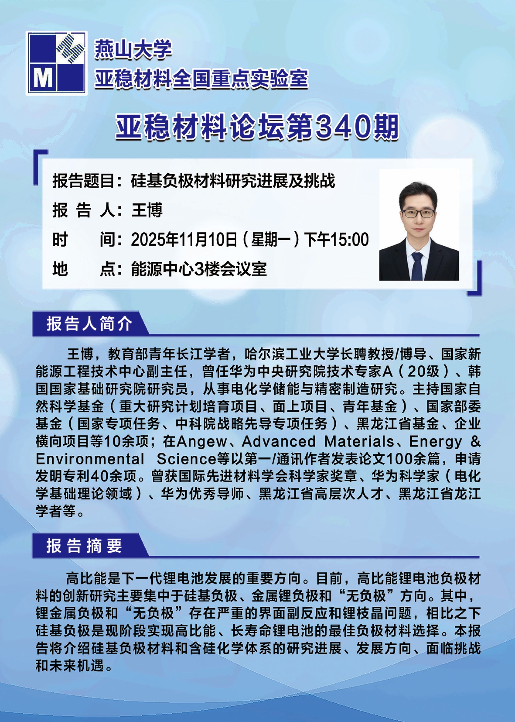 亚稳材料论坛第340期:硅基负极材料研究进展及挑战