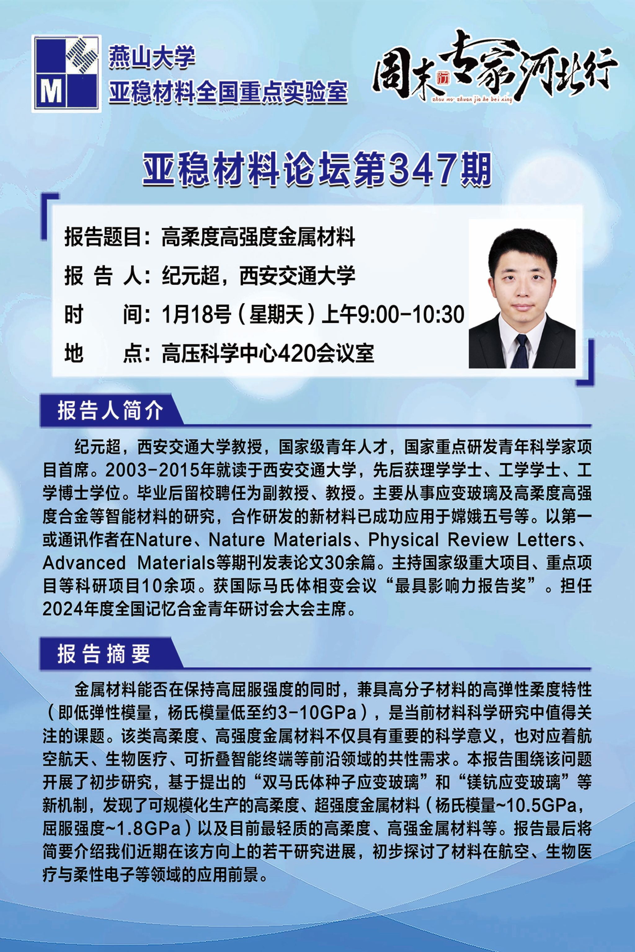 亚稳材料论坛第347期:高柔度高强度金属材料