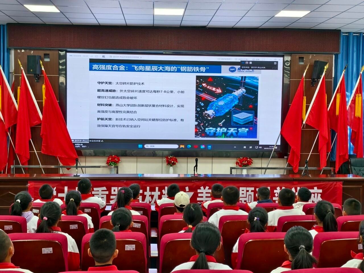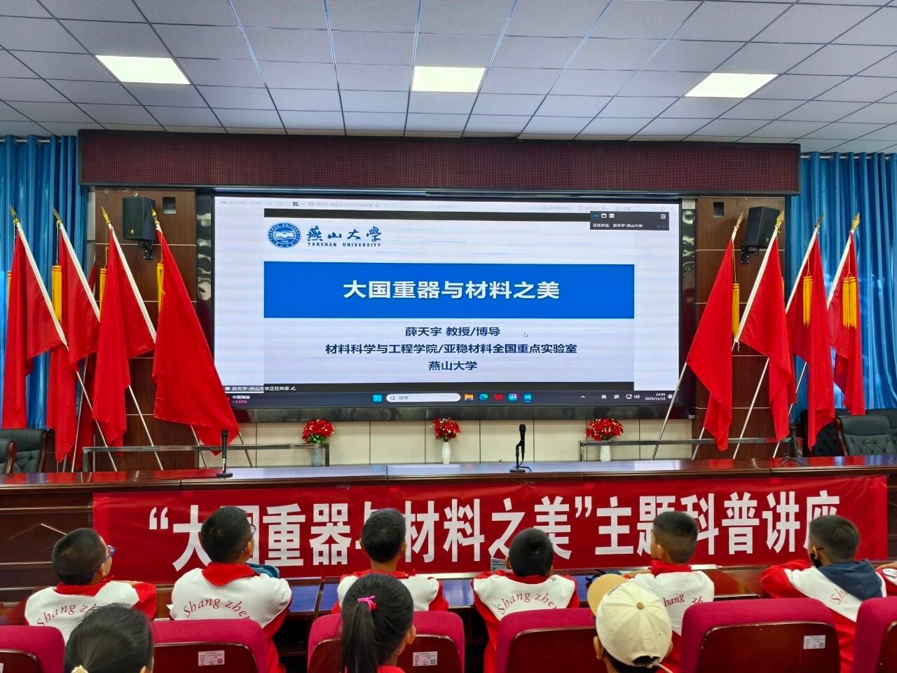 为“引导学生像科学家一样思考、像工程师一样实践”,激发青少年投身科技事业的远大志向和持久热情。11月12日,实验室薛天宇老师受燕山大学研究生支教团的邀请,为德令哈市长江路小学师生做了题为“大国重器与材料之美”的线上科普讲座。