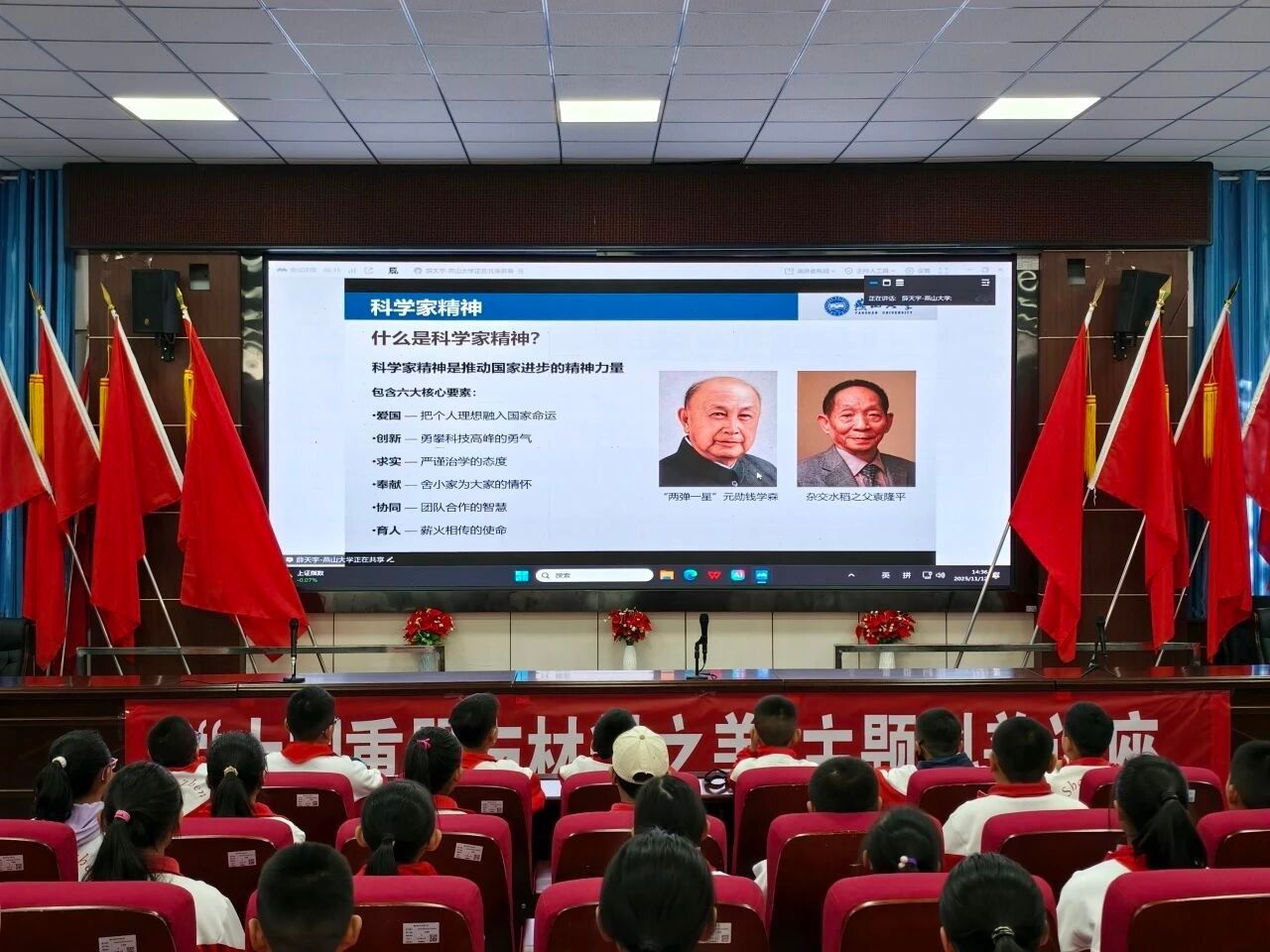 讲座伊始,薛天宇以“科学家精神”为核心切入点,开宗明义指出其作为推动国家科技进步、支撑民族复兴的关键精神内核,随后通过“理论阐释+典型案例”的方式,系统拆解了科学家精神的六大核心要素,让抽象精神变得可感可学。在此过程中,孩子们通过贴近生活、深入人心的科学家故事,跳出抽象概念,直观理解到了科学家精神跨越时代的丰富内涵与现实意义。