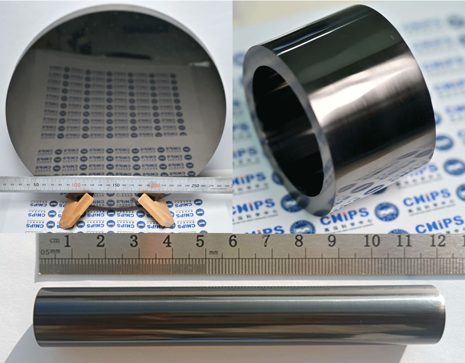 针对上述瓶颈,实验室田永君院士团队的赵智胜教授等人另辟蹊径、创新性地提出了亚稳态到亚稳态的固-固相变制备新策略。该技术采用高能碳前驱体为原料,通过压致固态相变工艺,实现了组织结构可控、性能优异的新型玻璃碳块材的大尺寸制备。目前,该团队已实现从原料、制备工艺到加工设备的全面国产化,成功制备出直径达250毫米、厚度超过20毫米的玻璃碳块材,其硬度高于2.0GPa,压缩强度超过1.0GPa,杂质含量低于50ppm。