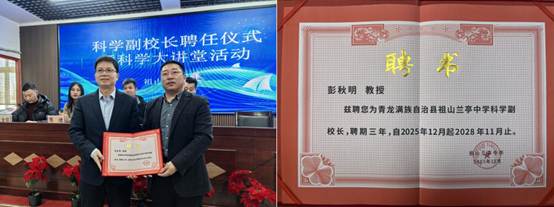 为深化校地科普合作,强化中小学科学教育师资力量,实验室多位国家级高水平专家受聘担任秦皇岛本地中小学科学副校长,其中实验室主任彭秋明教授接受了玉带湾学校、青龙县祖山镇兰亭中学的任职邀请,并以“走进神秘的镁世界”为主题,为两校师生带来专场科普讲座,以“科研专家+校园导师”双重身份筑