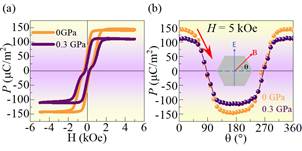 图4. 多铁性六角铁氧体BaSrMg2Fe12O22电极化随面内磁场角度的变化。