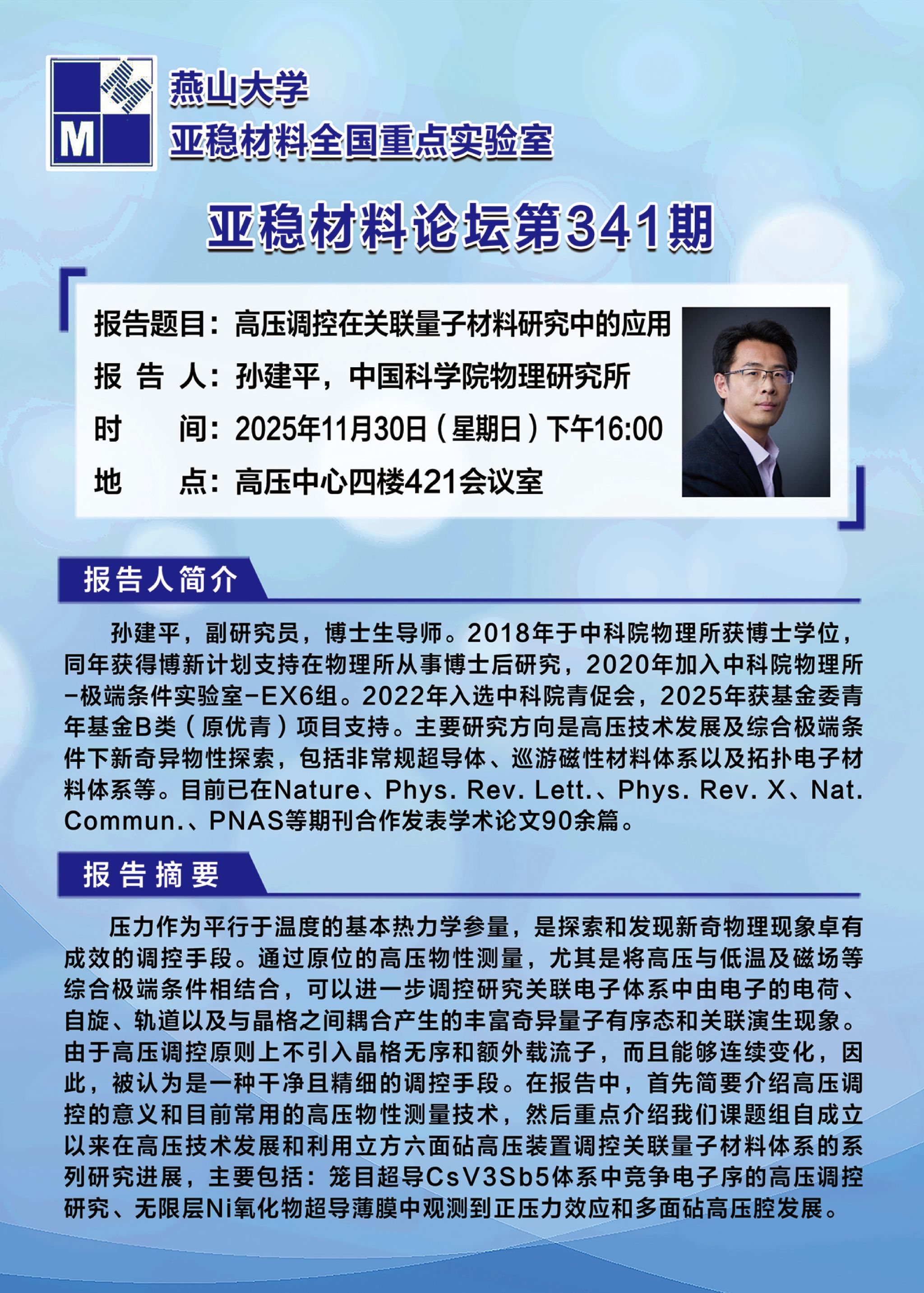 亚稳材料论坛第341期:高压调控在关联量子材料研究中的应用